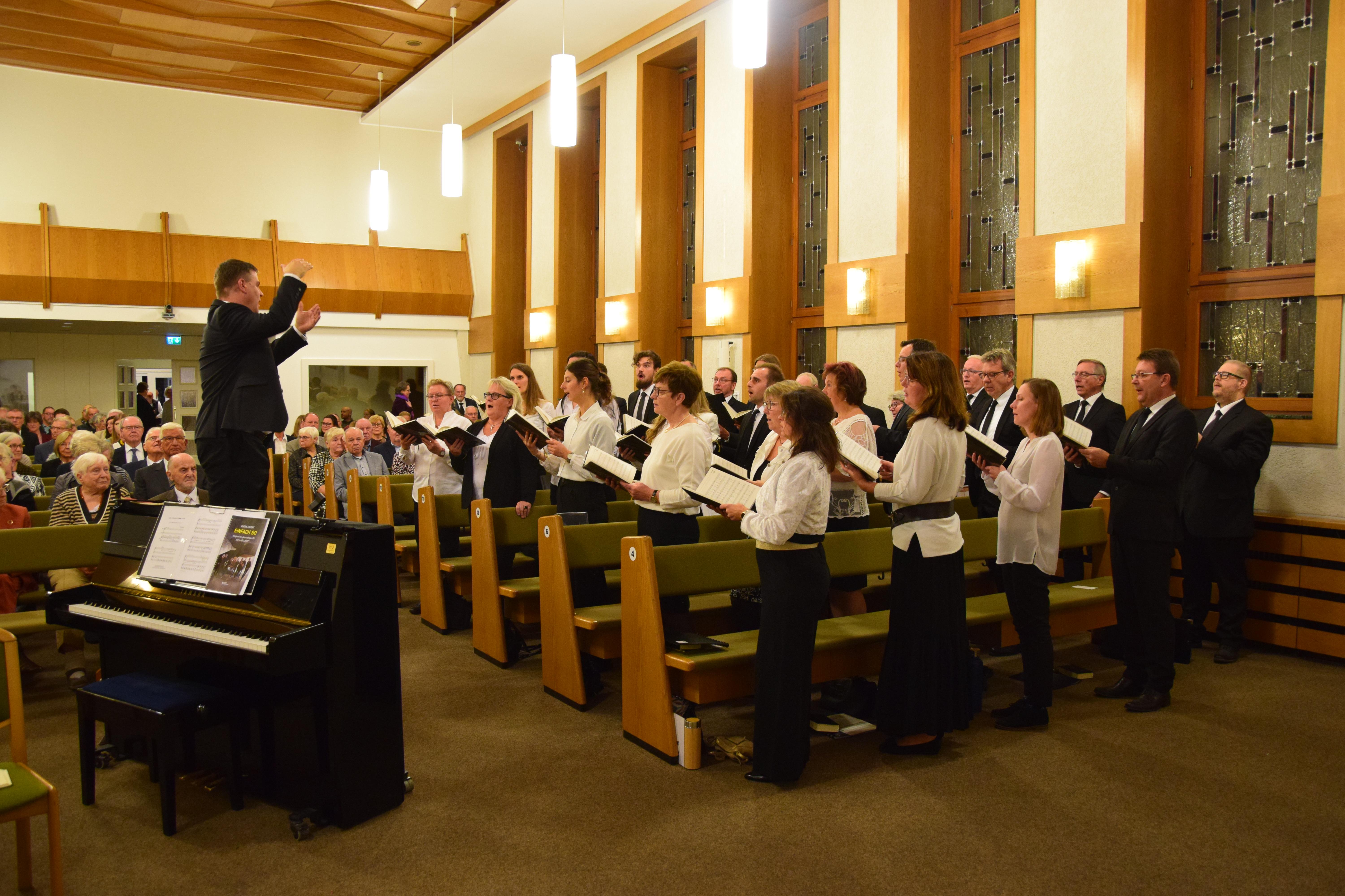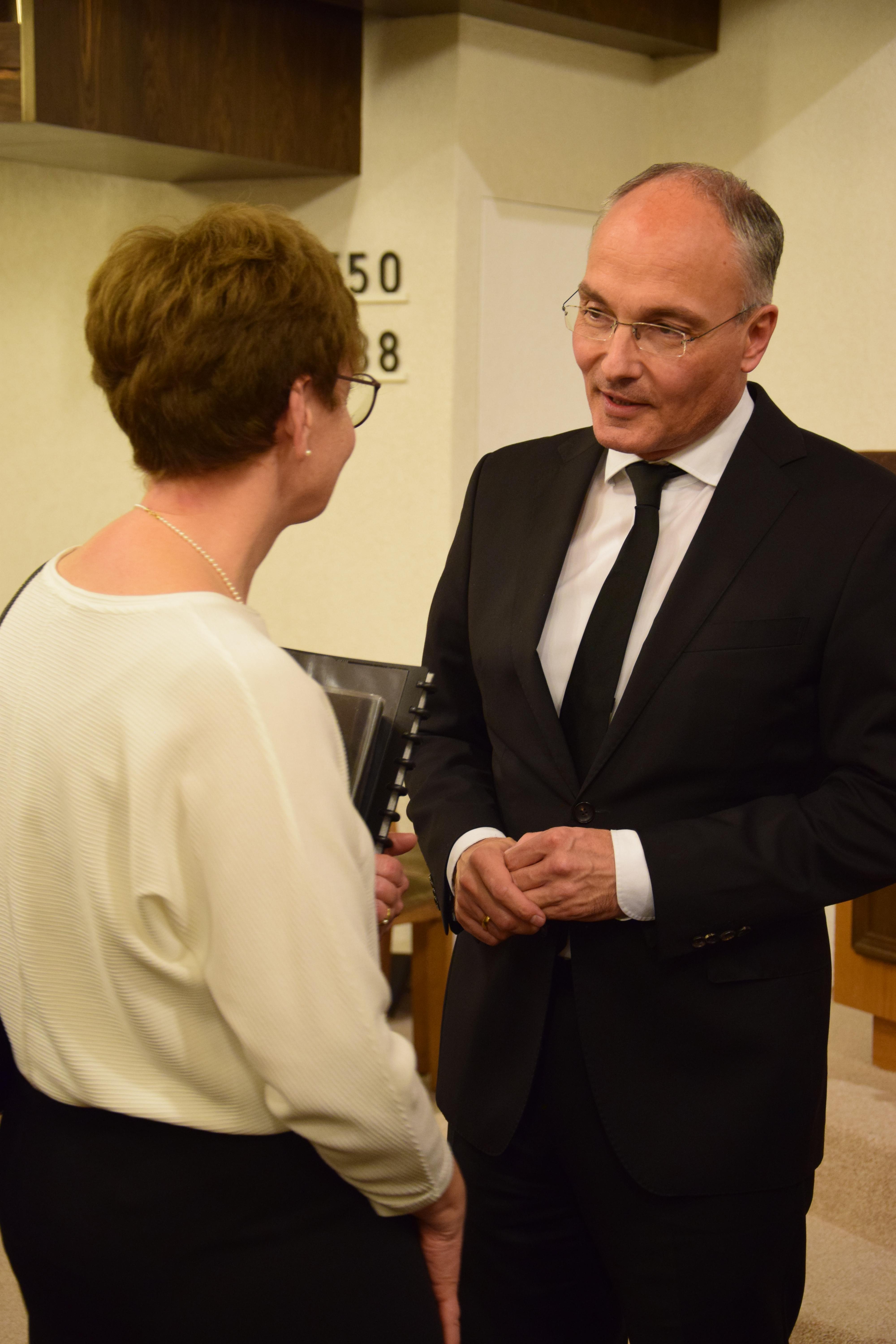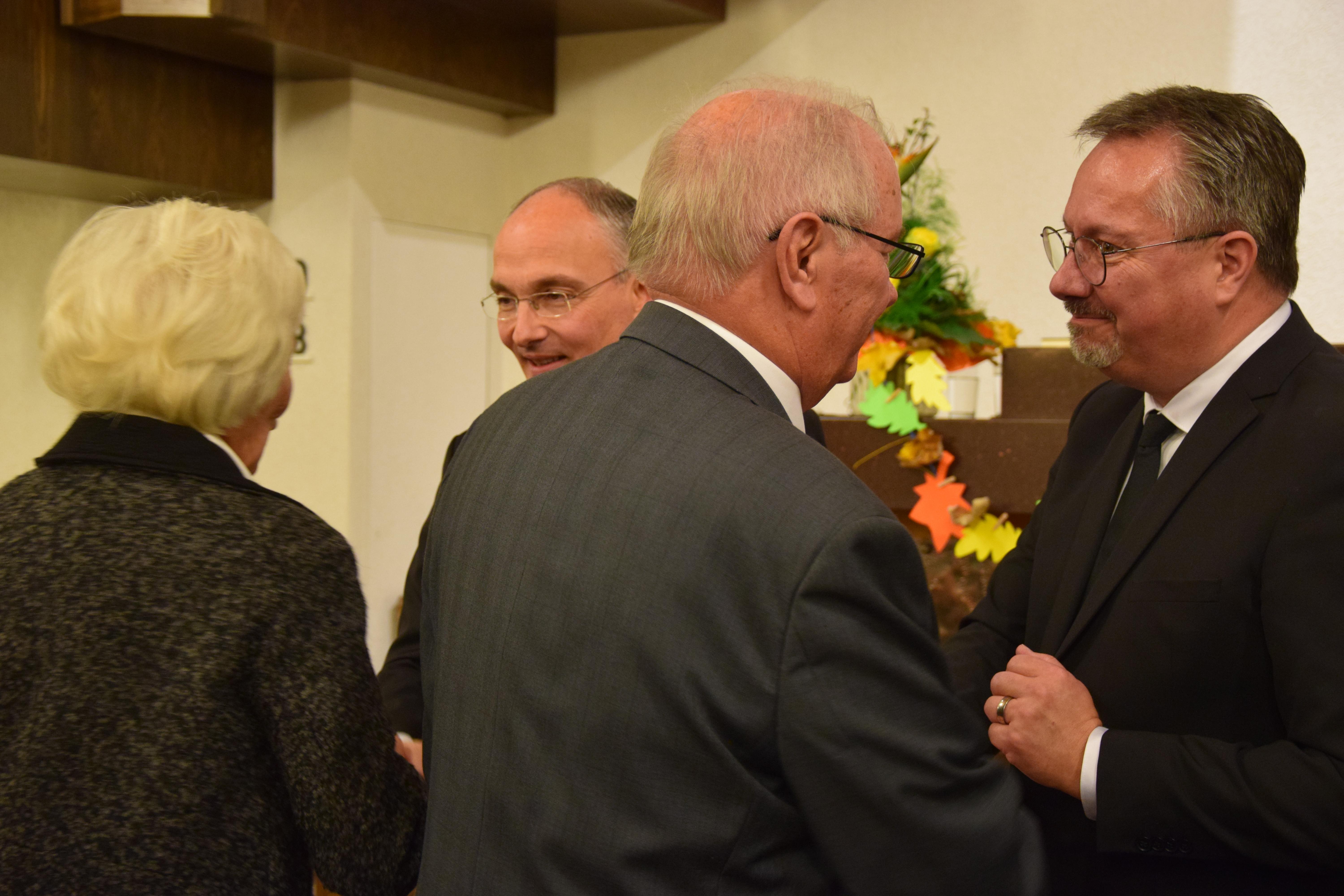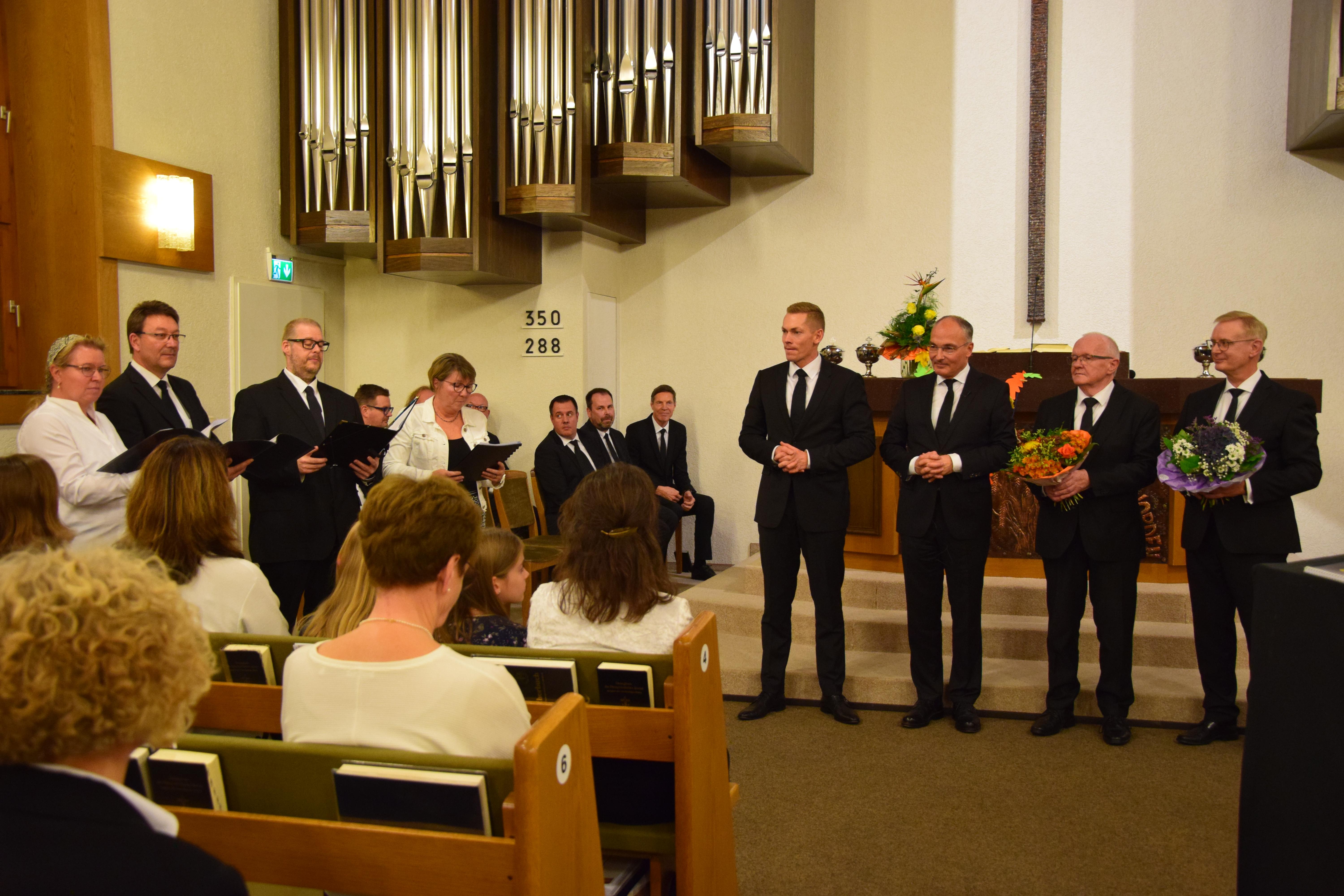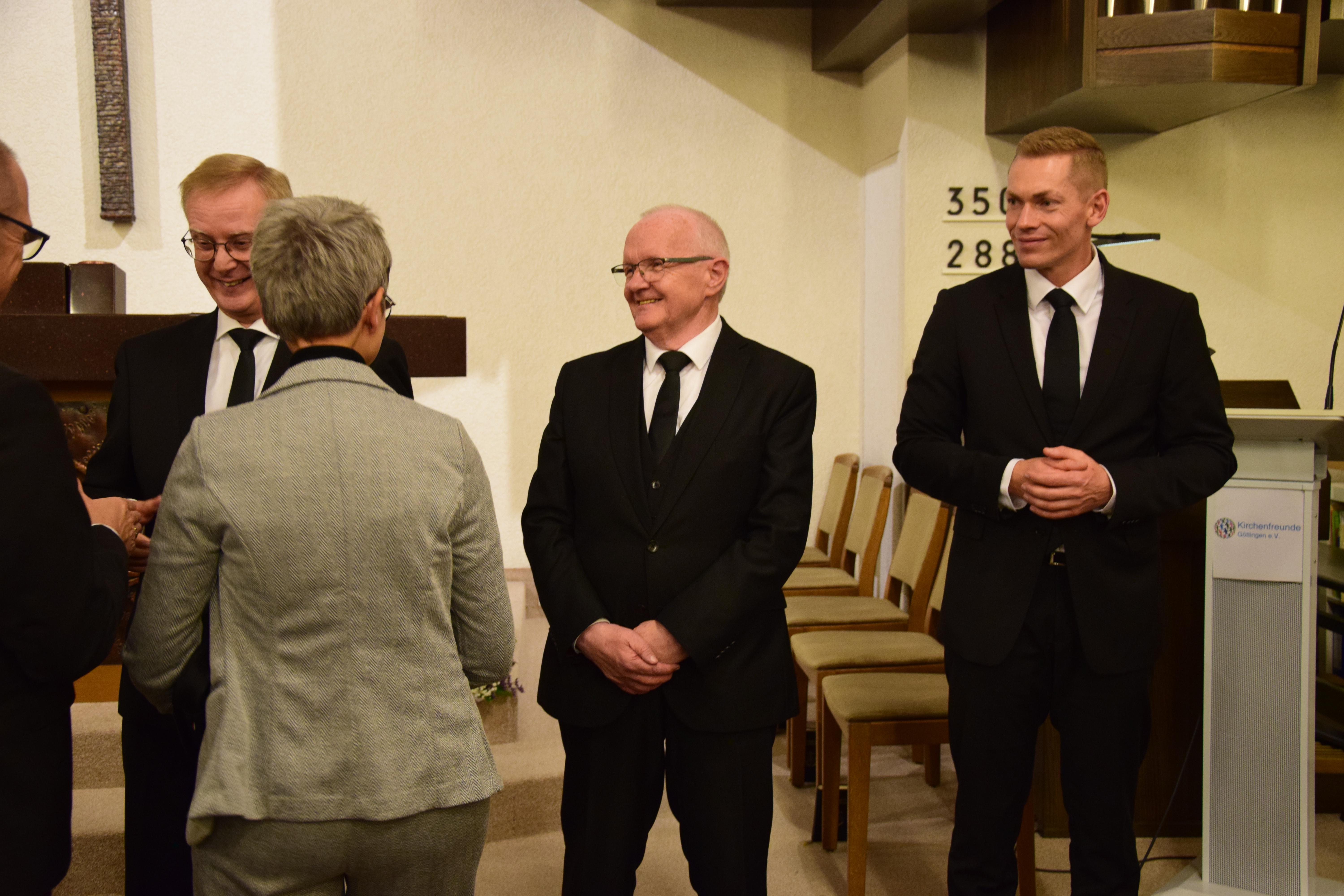 Musikalisch gestalteten neben Orgel und Klavier ein gemischter Chor, bestehend aus Sängerinnen und Sängern beider Gemeinden sowie ein Quartett den Festgottesdienst. Für die persönliche Verabschiedung und viele Gespräche und Begegnungen nahm sich der Stammapostelhelfer viel Zeit – sehr zur Freude der rund 220 Gottesdienstbesucher in der Göttinger Kirche.